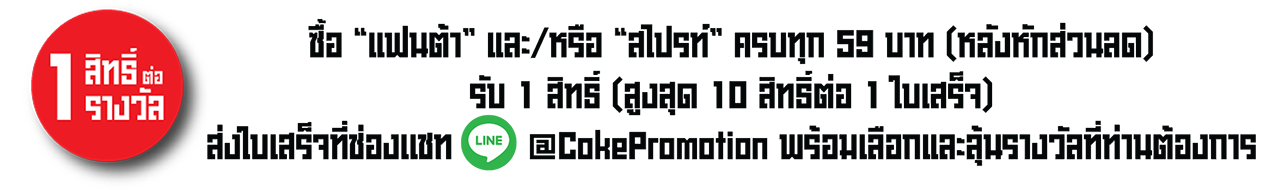 ต้องเลือกอย่างใดอย่างหนึ่งเท่านั้น และต้องเขียนแจ้งแอดมินทุกครั้ง ส่งใบเสร็จ มาที่ Line@CokePromotion